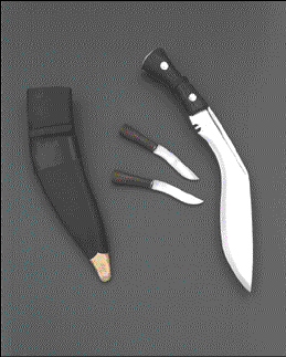 The 쿠크리 (KW-H57), legendary close combat weapon of the Gurka regiments, is to this day standard military issue. This version produced to Indian armed forces specilization retains the traditional accessory knives and the blade notch symbolizing the trident of Shiva, the war god. In addition to its collector appeal, the high-carbon steel full-tang blade, exotic hardwood handle and steel butt plate make this rugged piece an ideal tool for the outdoorsman. Overall: 16-1/2"